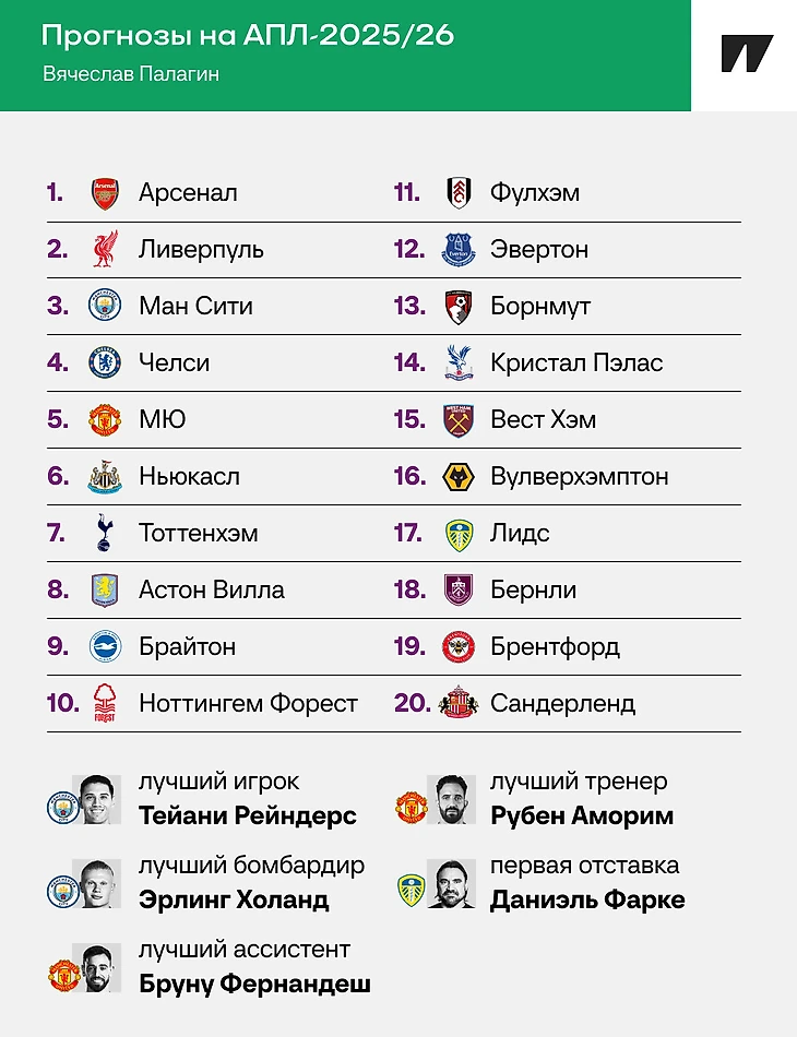 Я все еще верю в Рубена Аморима: несмотря на все проблемы, он вернет «МЮ» в топ-6. Тут отсутствие еврокубков станет серьезным преимуществом перед конкурентами. А вот «Ньюкасл» после катастрофического лета откатится – я не исключаю, что могут даже выпасть из десятки.