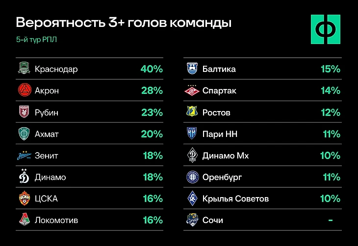 В пятом туре больше всего шансов у «Краснодара» против «Сочи». А вот дальше много неопределенности.