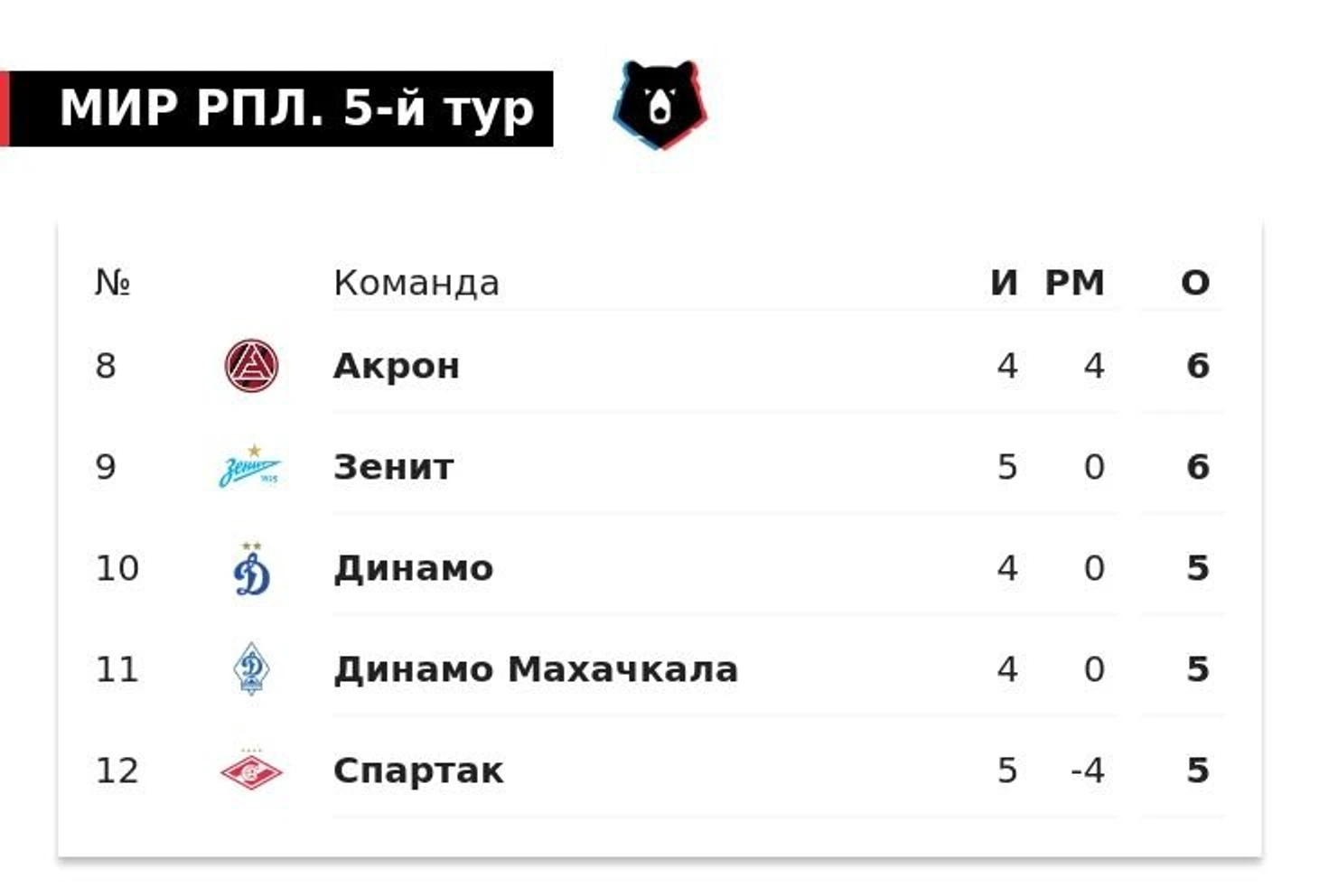 Сейчас главный фаворит сезона стоит в таблице восьмым, но теоретически может покинуть топ-10 после пятого тура. Для этого нужно, чтобы свои матчи выиграли оба «Динамо».