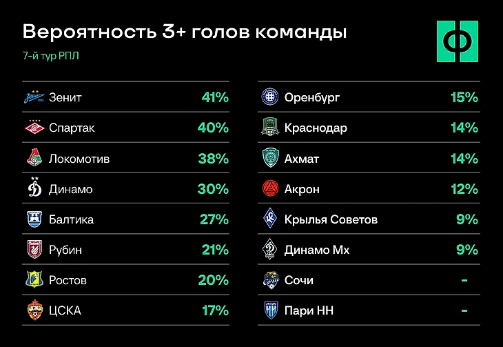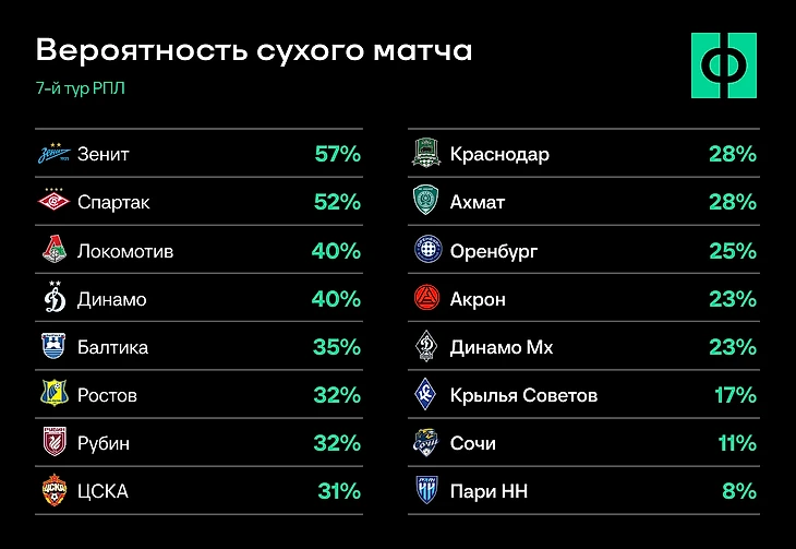 После матчей FONBET Кубка России встречаем седьмой тур чемпионата – с одной топ-афишей и несколькими вариантами под разгромы. В этот раз менеджерам Фэнтези РПЛ придется сложнее – нужно и крупные победы не пропустить, и найти применение лидерам в топ-матче ЦСКА и «Краснодара» – по ним прогноз негативный.
