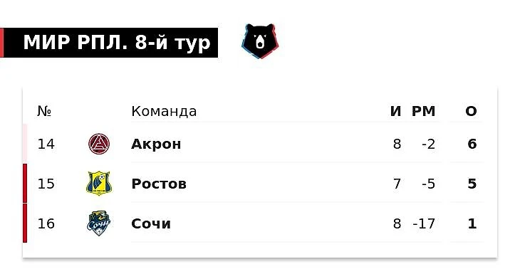 Это официально худший старт не только в истории РПЛ, но и всех чемпионатов России. Формально хуже начинал тюменский «Геолог» в 1992-м, но тогда из-за особенностей календаря после восьми туров аутсайдер провел только семь матчей, а вот восьмой как раз выиграл. То есть настолько плохой разницы мячей после восьми игр в истории российского футбола еще не было.