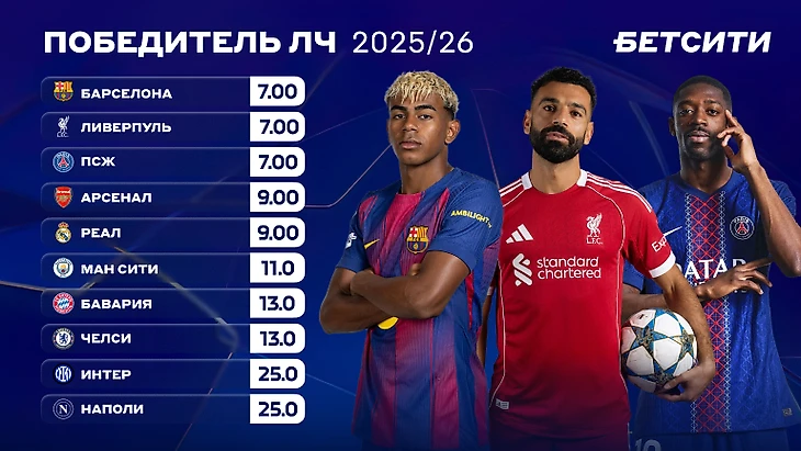 Шансы сразу трех команд оцениваются одинаково. «ПСЖ» восхитил всех в прошлом сезоне, а «Ливерпуль» потратил рекордные деньги на усиление состава перед стартом нового. «Барселона» похвастаться громкими трансферами не может, но команда Флика и без них демонстрирует яркую игру. На победу любой команды из этой троицы можно поставить с кэфом 7.00.