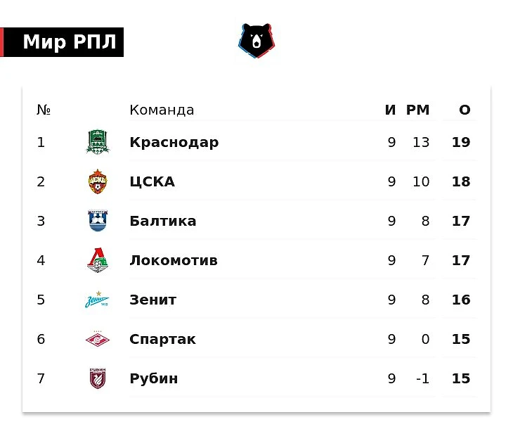 Перед 10-м туром в таблице Мир РПЛ сложилась интригующая ситуация: между лидером и седьмым местом лишь 4 очка.