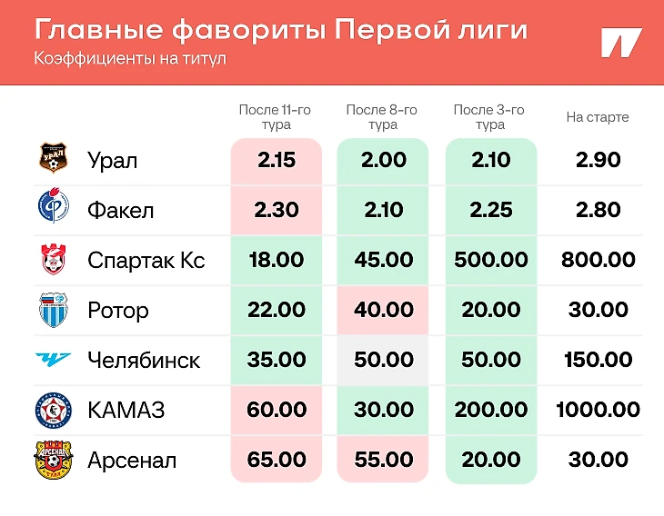 Главными фаворитами все еще считаются «Урал» и «Факел». Вот котировки и их динамика.