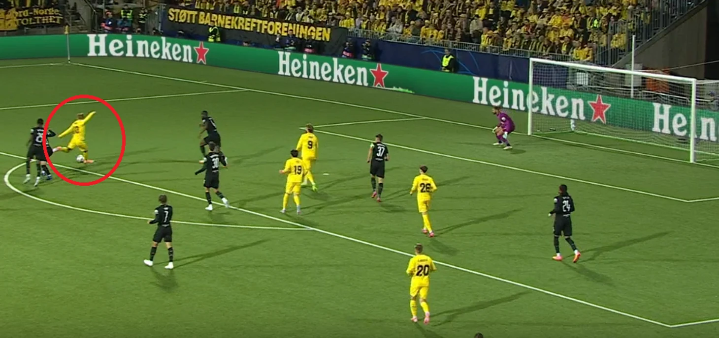 Первый тайм прошел без голов, но с полным преимуществом норвежцев: 63% владения, 1.63 xG и 11 ударов по воротам. На 35-й минуте «Буде-Глимт» мог открыть счет – Родриго Бентанкур в своей штрафной снес левого защитника Фредрика Бьеркана и привез пенальти. Каспер Хег пробил выше ворот.