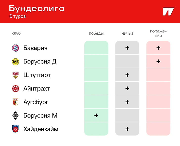 В Германии сыграли только шесть туров – нолей еще много. «Бавария», естественно, выделяется. Пока это единственная команда в топ-лигах вообще без потерь. Добавим, что у «Баварии» нет осечек и в Кубке Германии, и в Лиге чемпионов – идеальный график.