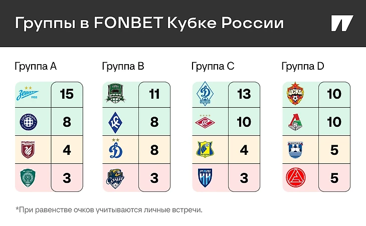 Победители далее уже встретятся с командами, занявшими третьи места на групповом этапе в Пути РПЛ.