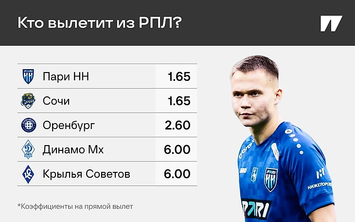 ● За еще одно стыковое место поспорят «Крылья Советов» и махачкалинское «Динамо» – котировки у них равные.