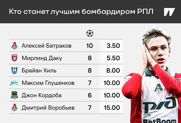 Батраков – фаворит на лучшего бомбардира, Хиль ворвался в топ-3