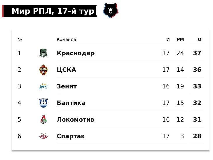 «Краснодар» продолжает лидировать в РПЛ за тур до зимней паузы. Пока больше всех забили, а меньше пропустила только «Балтика». Опережают на очко ЦСКА, а у «Зенита» еще вечерняя игра с «Рубином».