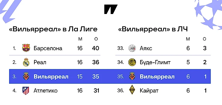 Парадокс сезона: «Вильярреал». В Ла Лиге – топ-3 и борьба с «Реалом», в ЛЧ – на самом дне