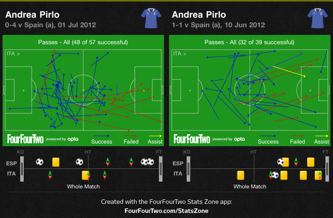Сдержание Пирло, конечно, не является главным фактором победы. Самым важным фактором было то, что Испания играла в непривычно быстрый футбол, с чистейшим пасом и мощнейшим прессингом итальянских нападающих. Марио Балотелли ни разу не получил мяч в штрафной Испании. Испанцы выдавили его из своей штрафной.