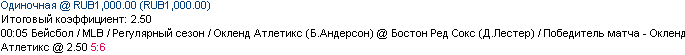 25/04 00:05 Окленд Атлетикс (Б.Андерсон) @ Бостон Ред Сокс (Д.Лестер) / Победитель матча - Окленд Атлетикс @ 2.50 5:6 ---