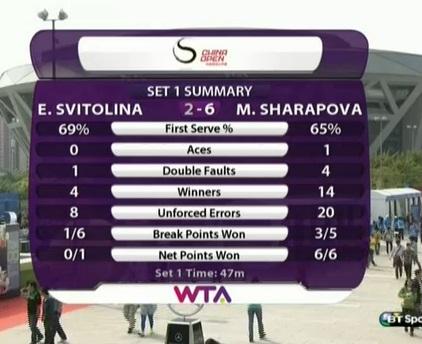 Знаю, в последних двух матчах Маша хорошо начинала. Должен сказать, ей повезло, что подавала первой. Света - куда более серьезный соперник, чем Свитолина и КСН. Она тоже сделает брейк. Вряд ли она дважды отдаст свою подачу в первом сете. То есть, вы не увидим вот это https://pbs.twimg.com/media/By34kX7IYAACLey.jpg:large , или это https://pbs.twimg.com/media/BywhBffIMAE0bbY.jpg:large . Это я чтоб вы поняли, насколько плохо начинали Свитолина и КСН.