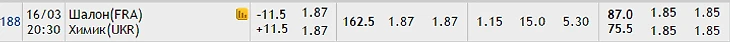 Химик же выглядит не убедительно, класс не тот что в прошлые годы, не думаю что южненцы способны сегодня что-то противопоставить Шалону. Сделаю на этот матч 3 ставки: победа Шалона с форой -11.5, общий тотал матча больше 162.5 и индивидуальный тотал Джона Роберсона 12.5