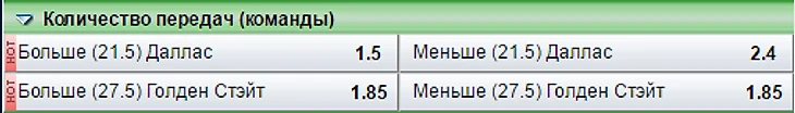 Ставка БК Фаворит. Даллас - Голден Стейт. Голден Стейт больше 27.5 результативных передач