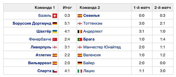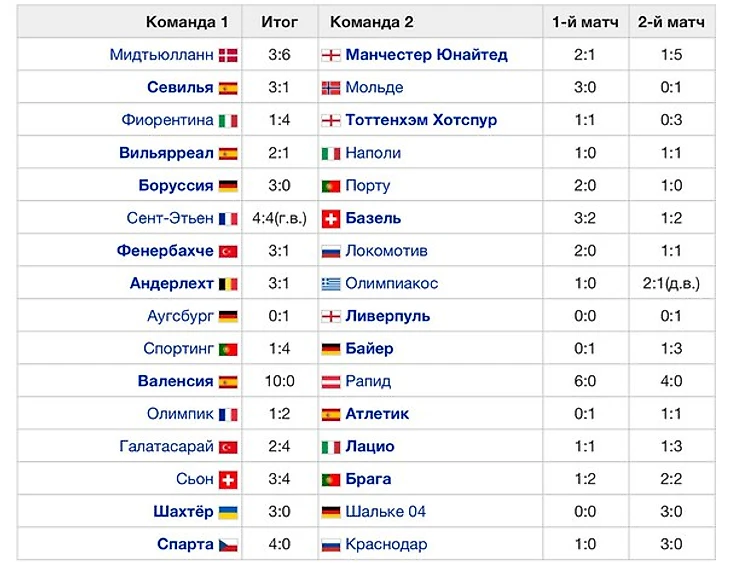 Далее посмотрим как проходили матчи плей-офф Лиги Европы 2015-2016 до сегодняшнего дня.