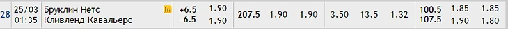 Ставка БК ПариМатч. Бруклин Нетс - Кливленд Кавальерс. Победа Кливленда с форой -6.5 очков