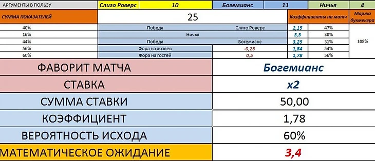 4. 21:45 Ирландия Премьер Лига. Слайго Роверс - Богемианс. Ставка: Ф2(+0,5) за 1,78. Размер ставки: 50$.
