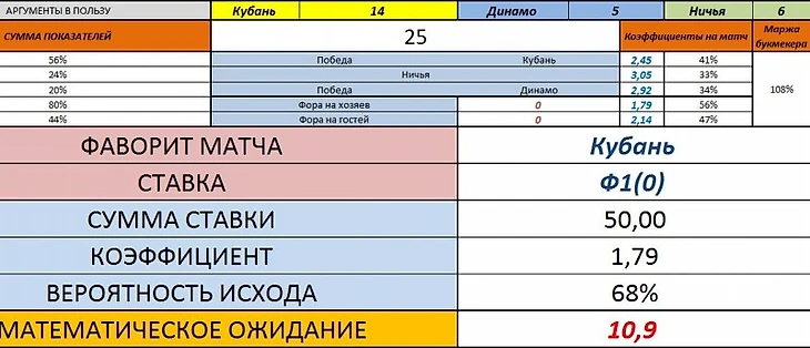 1. 19:30 Россия ПЛ. Кубань - Динамо Москва. Ставка: Ф1(0) за 1,79. Размер ставки: 50$.