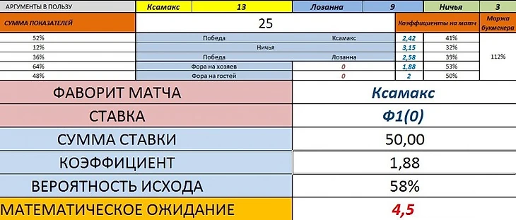 2. 22:45 Швейцария Челлендж-Лига. Ксамакс - Лозанна. Ставка: Ф1(0) за 1,88. Размер ставки: 50$.