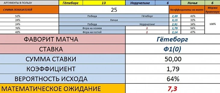 1. 20:00 Швеция Аллсвенскан. Гётеборг - Норрчепинг. Ставка: Ф1(0) за 1,79. Размер ставки: 50$.