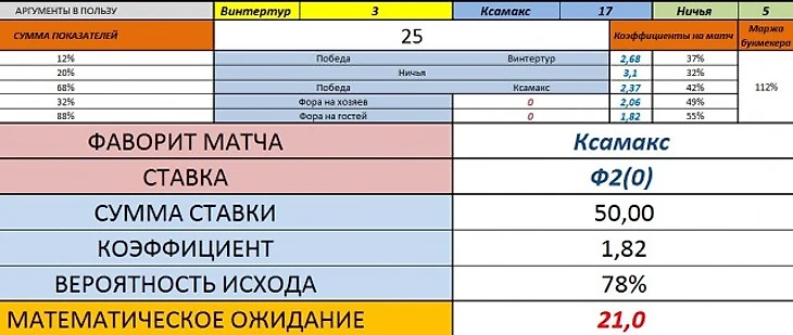 1. 20:45 Швейцария Челлендж-Лига. Винтертур - Ксамакс. Ставка: Ф2(0) за 1,82. Размер ставки: 50$.