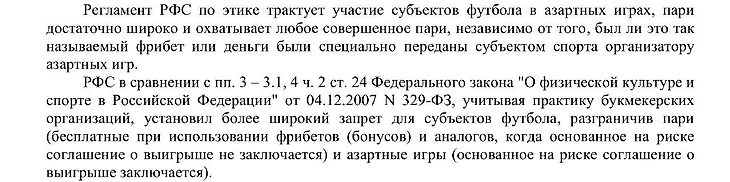 Это выдержка из решения Комитета РФС по этике по второму эпизоду в отношении Писарского. РФС посчитал, что имеет право трактовать нормы федерального законодательства шире, чем их установил законодатель.