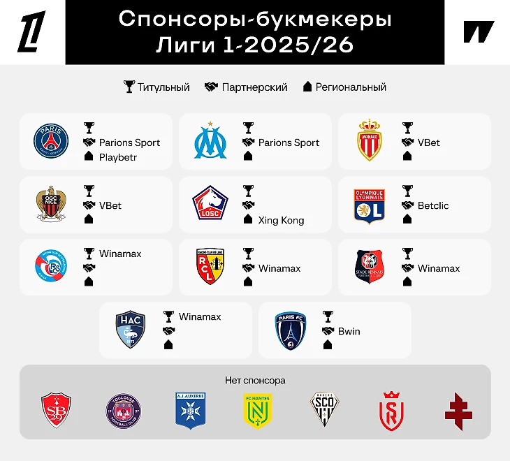 Во Франции соглашения с букмекерскими компаниями разрешены, но в Лиге 1 присутствует только Winamax, да и тот у двух клубов.