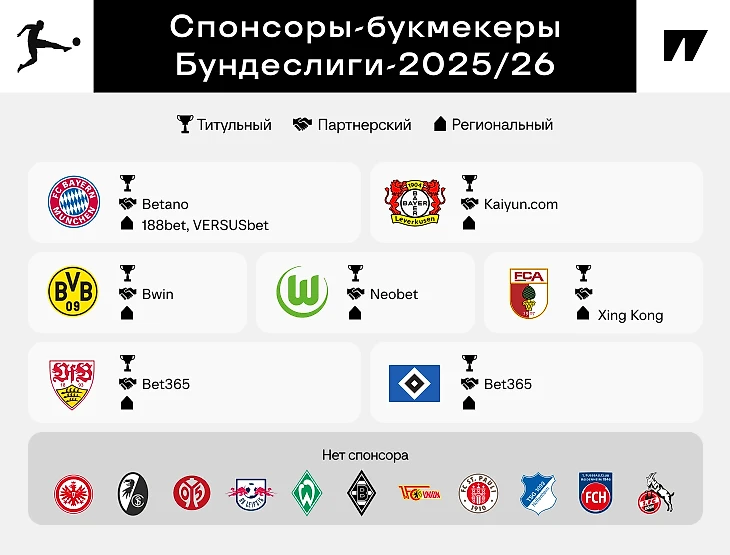 ● В Германии клубам разрешено рекламировать букмекерские компании, но только если партнер располагает лицензией, позволяющей вести деятельность в стране.