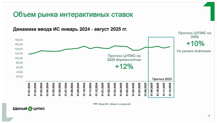 Подтвердились слова авторитетных экспертов о снижении темпов роста рынка. Коммерческий директор ЕЦУПИС Артем Сычев представил динамику рынка интерактивных ставок. В прошлом году закладывался рост в 30% – получилось только 12%. А в 2026-м – прогноз уже на снижение.