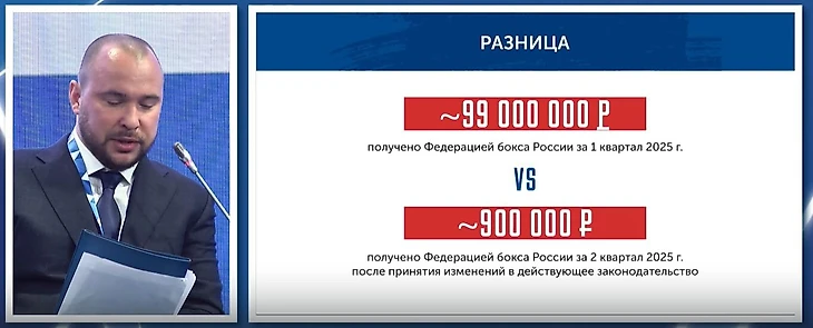 ● Поддержал спикеров и генсек Федерации бокса Александр Беспутин. Для презентации был подготовлен показательный слайд, фиксирующий изменения.
