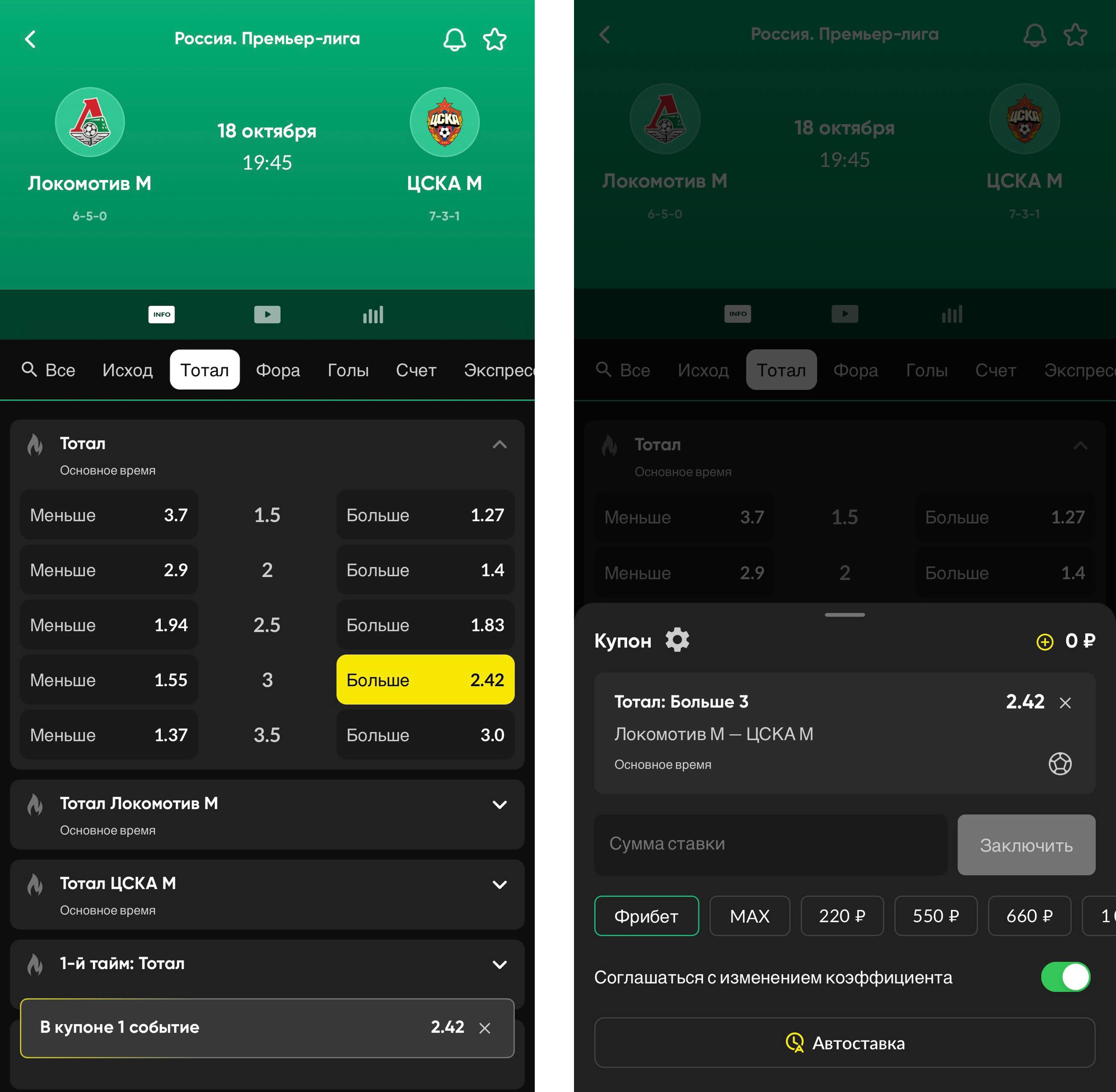 Рассмотрим еще несколько вариантов ставок на тотал больше: