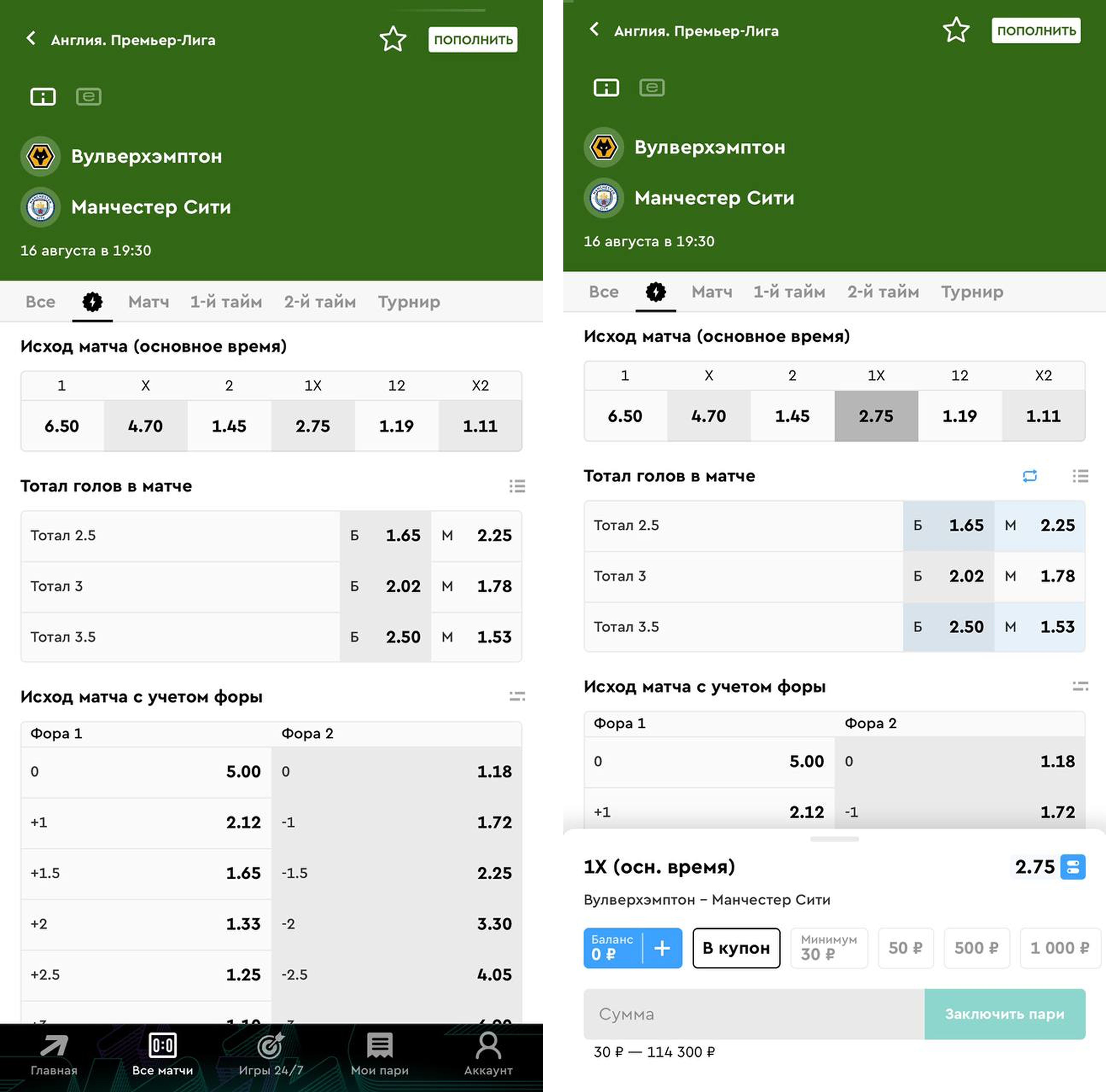 Предположим, сумма ставки – 1 000 рублей. Пари сыграет, если «Вулверхэмптон» по итогам основного времени победят или сыграют вничью. В этом случае выплата составит 2 750 рублей.