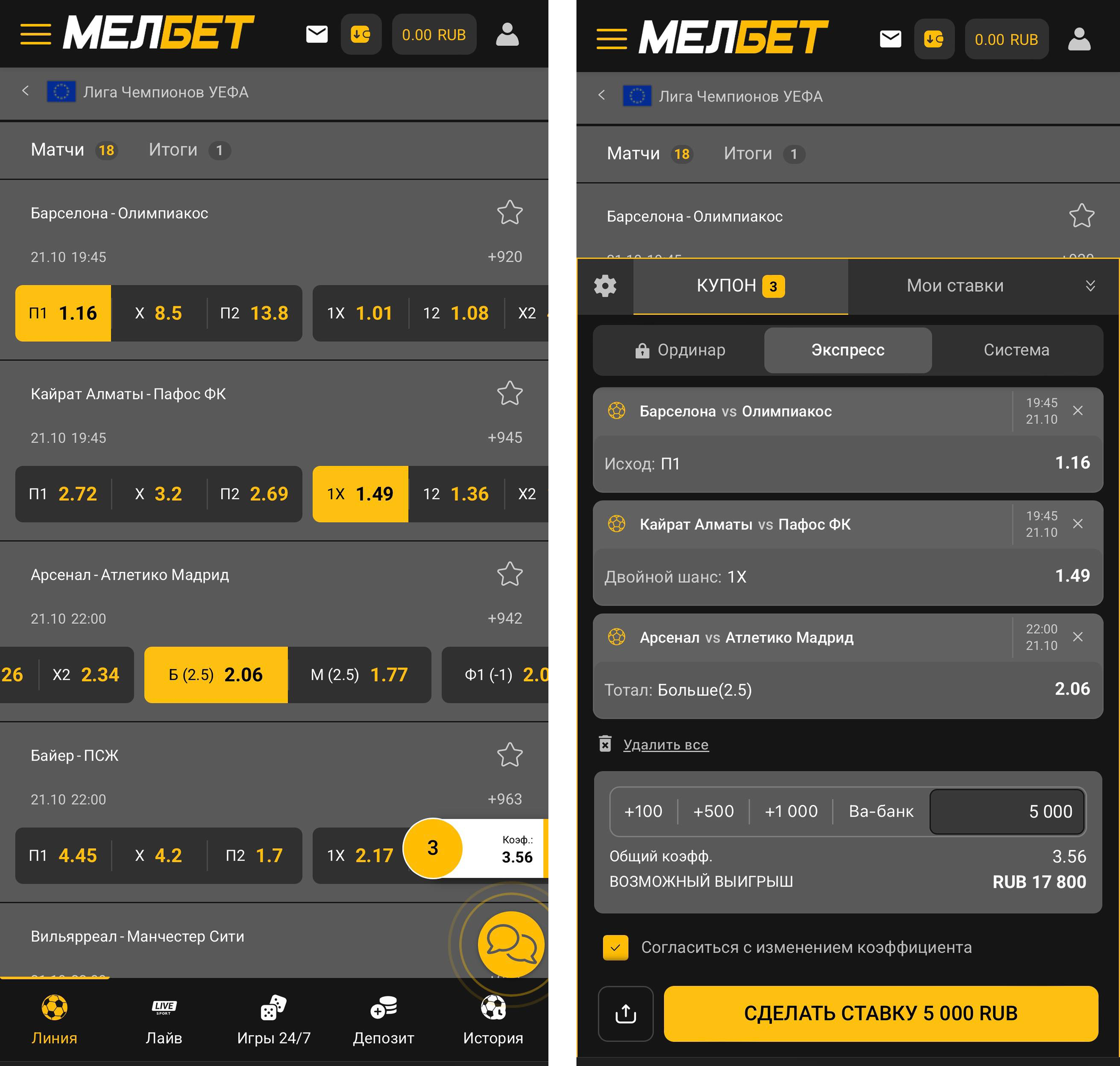 Чтобы сделать экспресс ставку в «Мелбет», нужно: