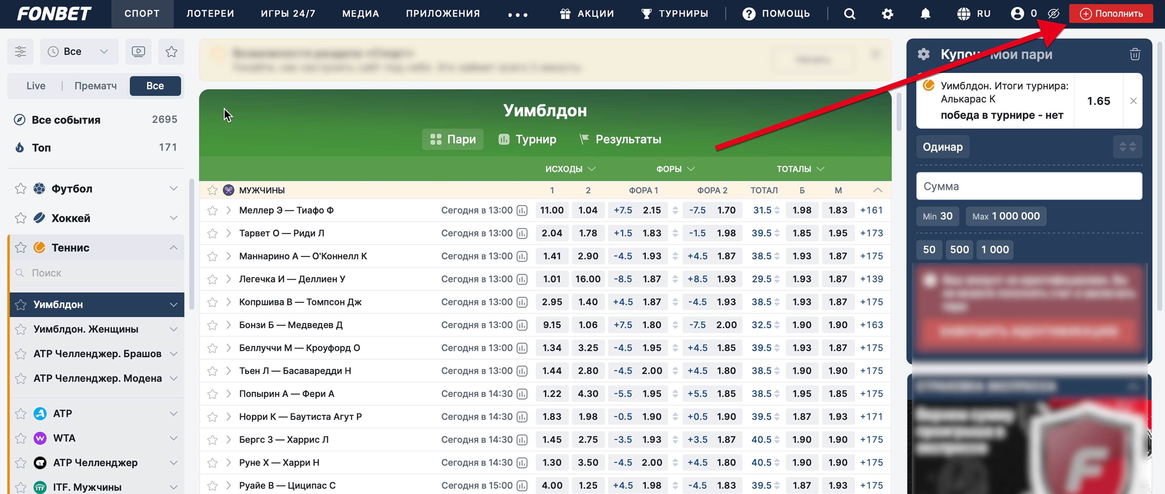 Как пополнить «Фонбет» через сайт: пошаговая инструкция