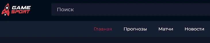 Центральную часть главной страницы занимает матч-центр. Есть рекламный блок. В нем представлен анонс главных новостей дня и бонусных предложений. На главной странице GameSport.Com представлено горизонтальное меню с основными разделами сайта: