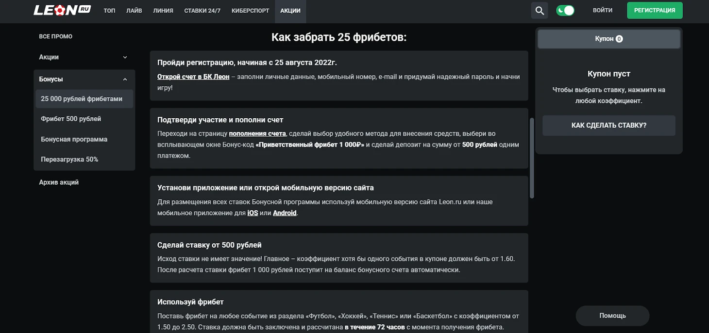 Акция действует только для новых клиентов, которые еще не создали аккаунт на сайте букмекерской конторы. Игрок при регистрации указывает: