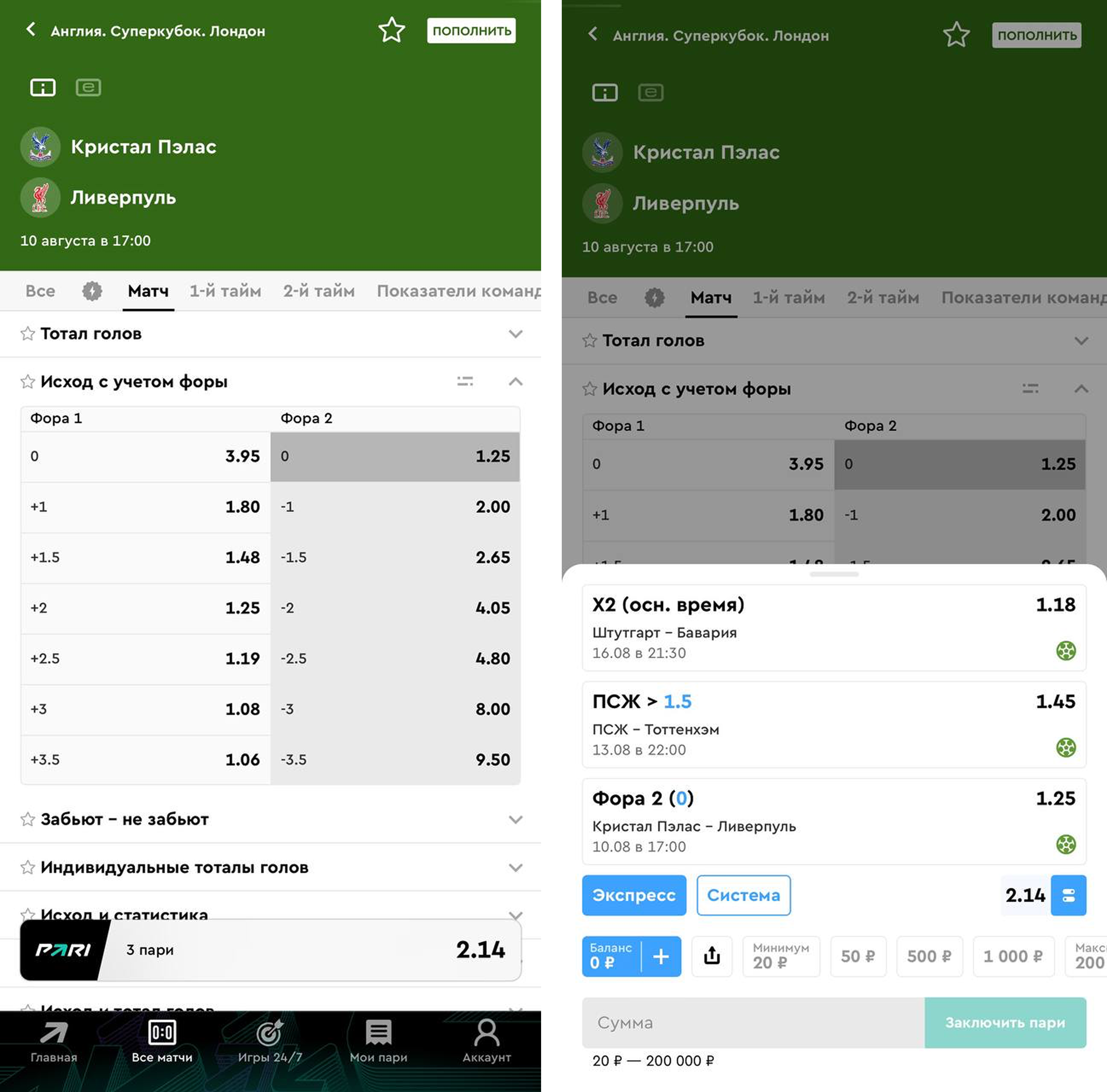 Можно ставить не только на исходы. Например, в этих же матчах – на нулевую фору «Ливерпуля», индивидуальный тотал больше 1.5 голов в матче «ПСЖ» и вариант с непроигрышем «Баварии». Это более предсказуемые варианты, так что и коэффициенты на них существенно ниже.