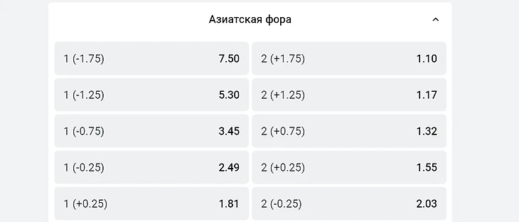 На какие виды спорта можно ставить с азиатской форой (0,25)?