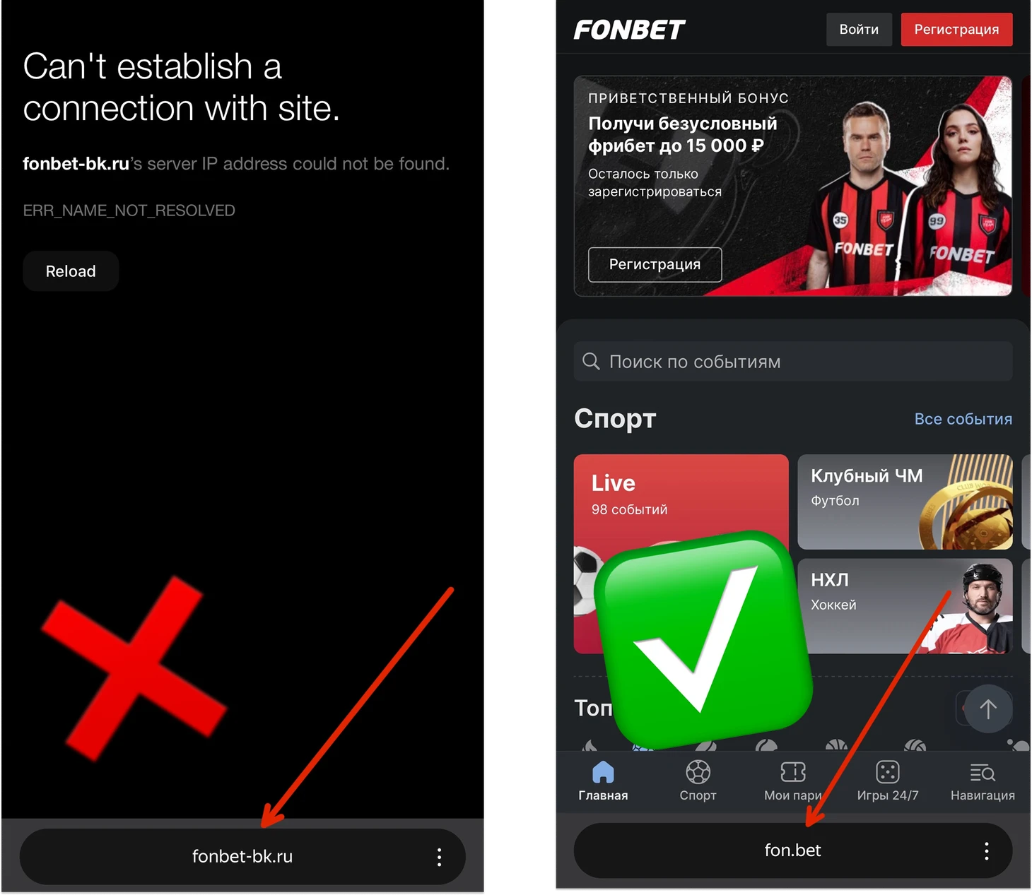 Неверно введен адрес сайта. Здесь все банально и просто. Всего одна неправильная буква при наборе адреса – и сайт «Фонбет» не открывается. Адрес официального сайта лицензированной российской конторы – fon.bet. Еще раз перепроверьте правильность введенных данных и попробуйте зайти снова.
