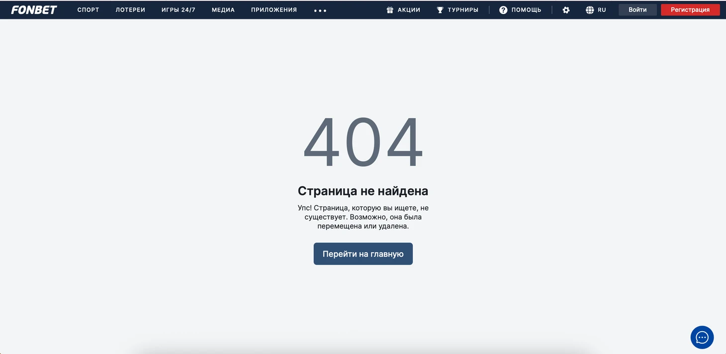 Сайт «Фонбет» выдает ошибку 404 – что это значит?