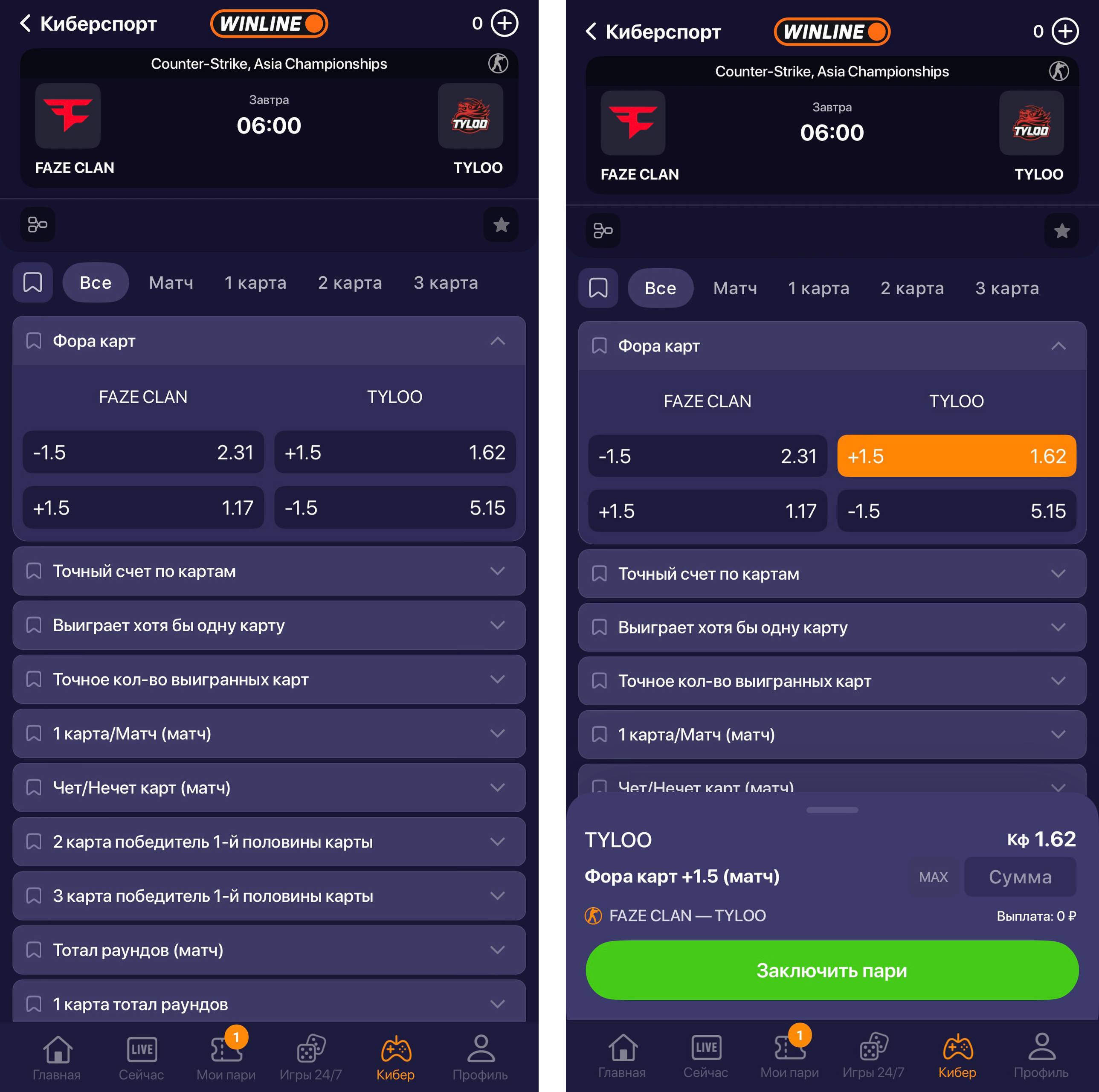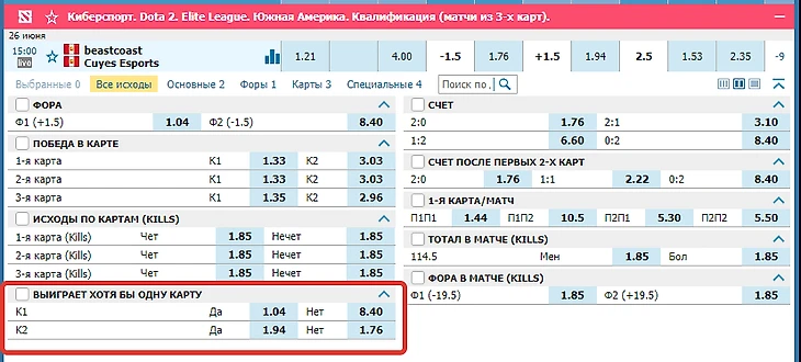 ТБ 0,5 можно встретить в разных дисциплинах, но оно может записываться в другом формате. Например, в киберспорте вы можете сделать ставку на победу команды как минимум на одной карте, это аналог ставки ТБ 0,5 на выбранный коллектив.