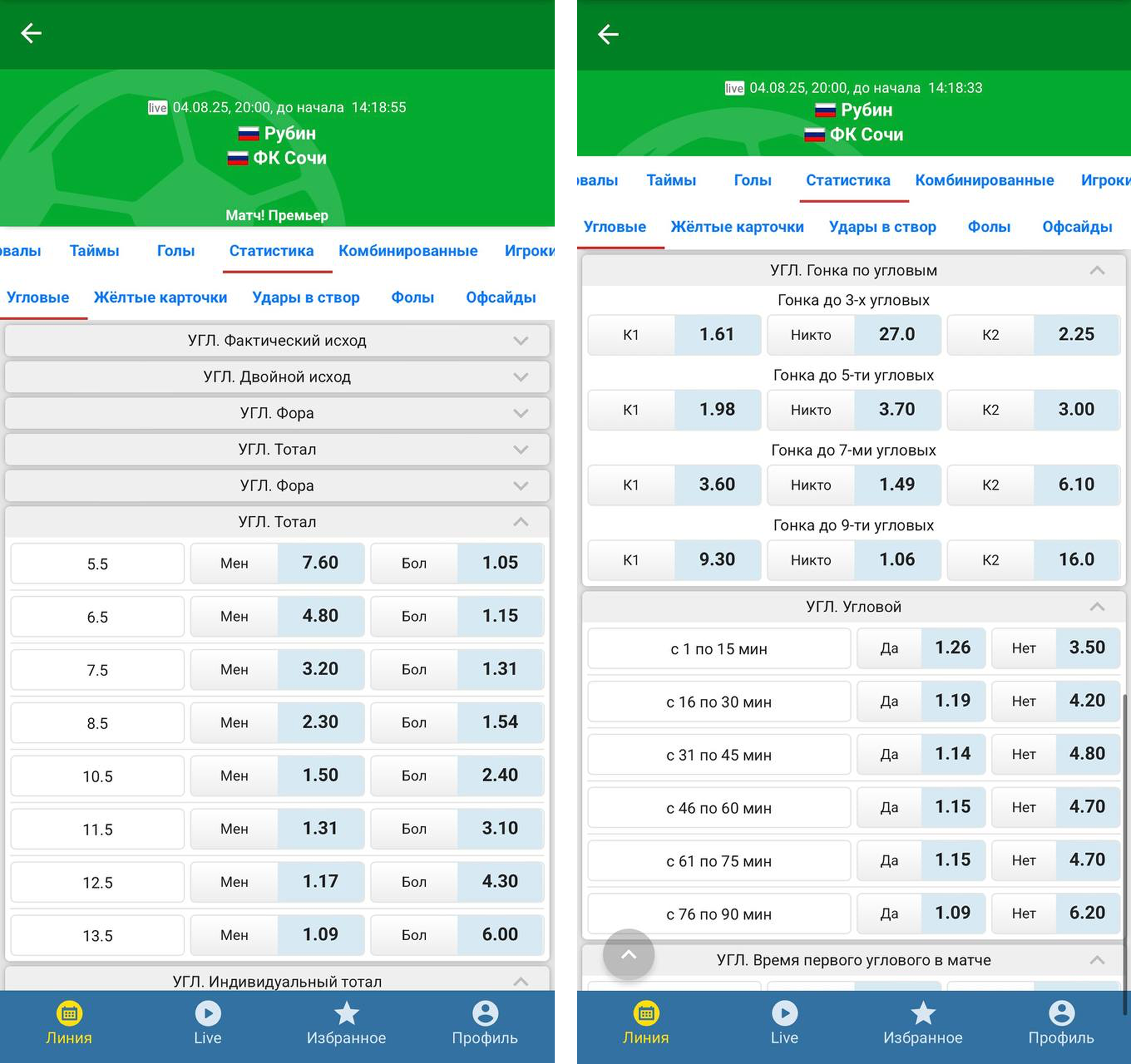 Ставки на угловые есть в большинстве БК. Отличие в количестве вариантов и диапазон тоталов.