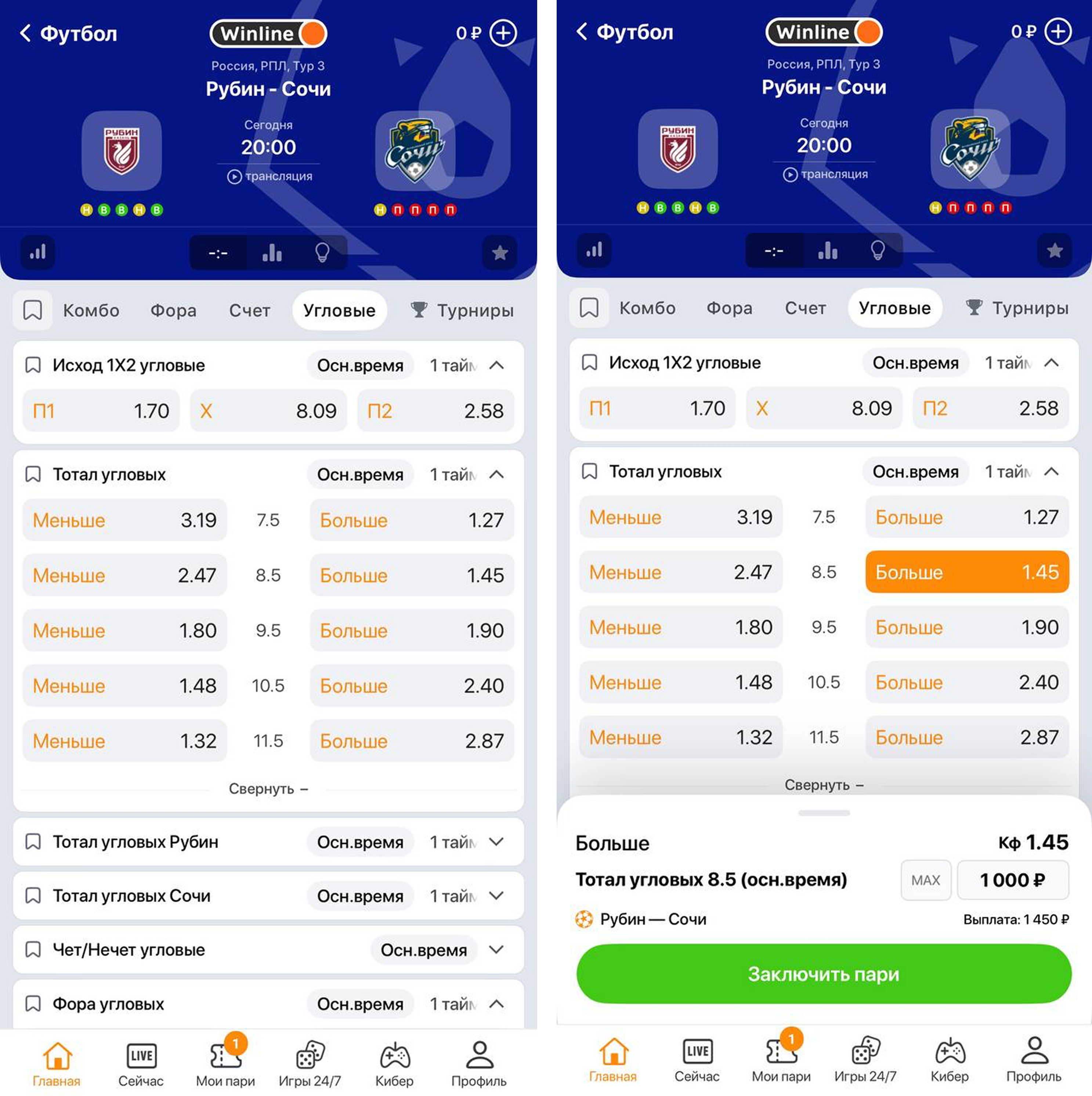 Если бы команда заработала 6 стандартов, то обе ставки оказались выигрышными, а при 4 угловых — проигрышными.
