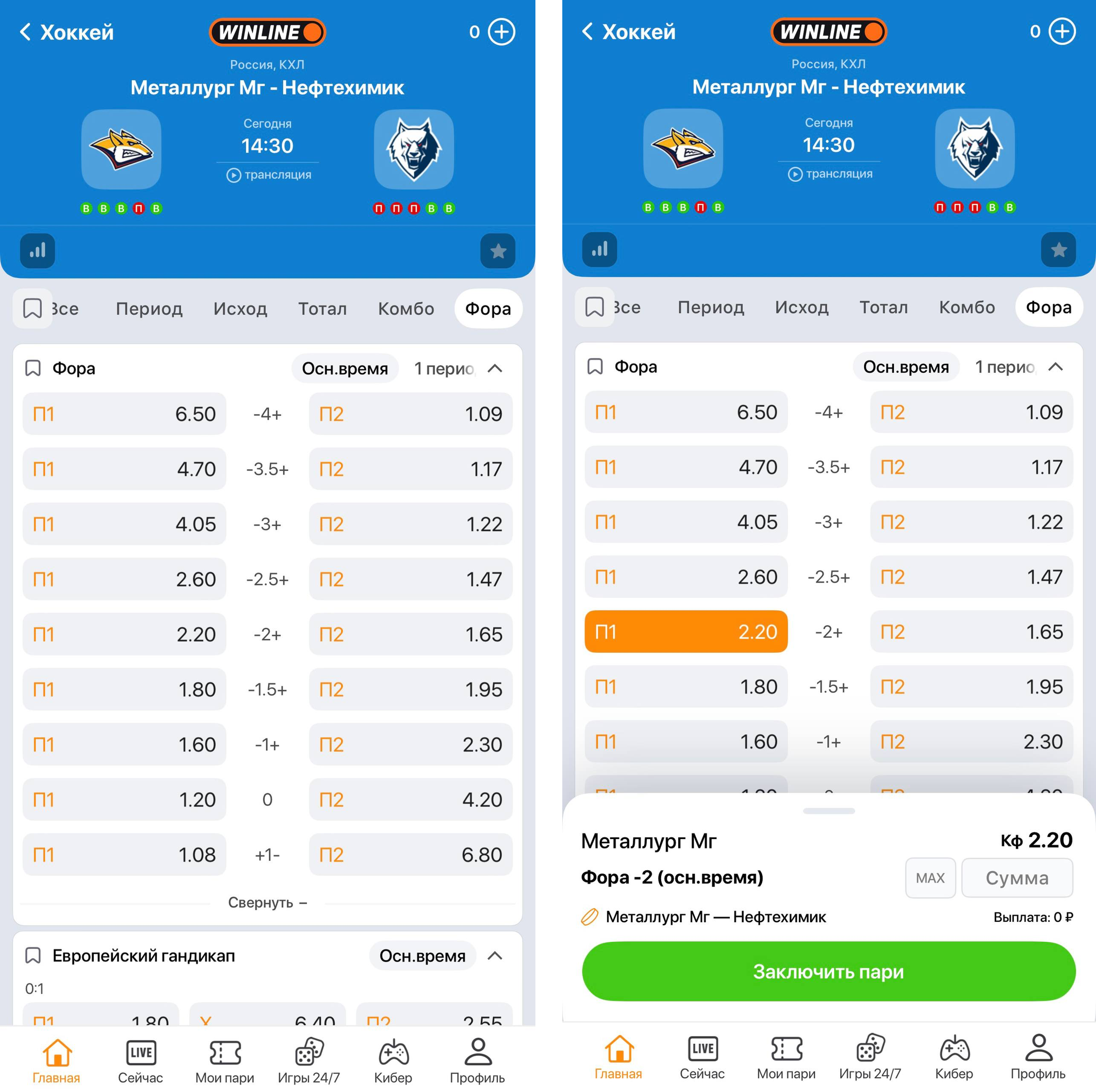 В хоккее Ф1 (2) также популярна, особенно в играх не самых равных соперников. Так, пари Ф1 (-2) на матч «Металлург» — «Нефтехимик» выиграет, если хозяева победят с разницей в 3 или более шайб. Расчет полностью аналогичен тому, что в футболе и других видах спорта. Ставка Ф1 (+2) ваша, если «Металлург» победит, сыграет вничью (в основное время) или проиграет с разницей в одну или две шайбы.