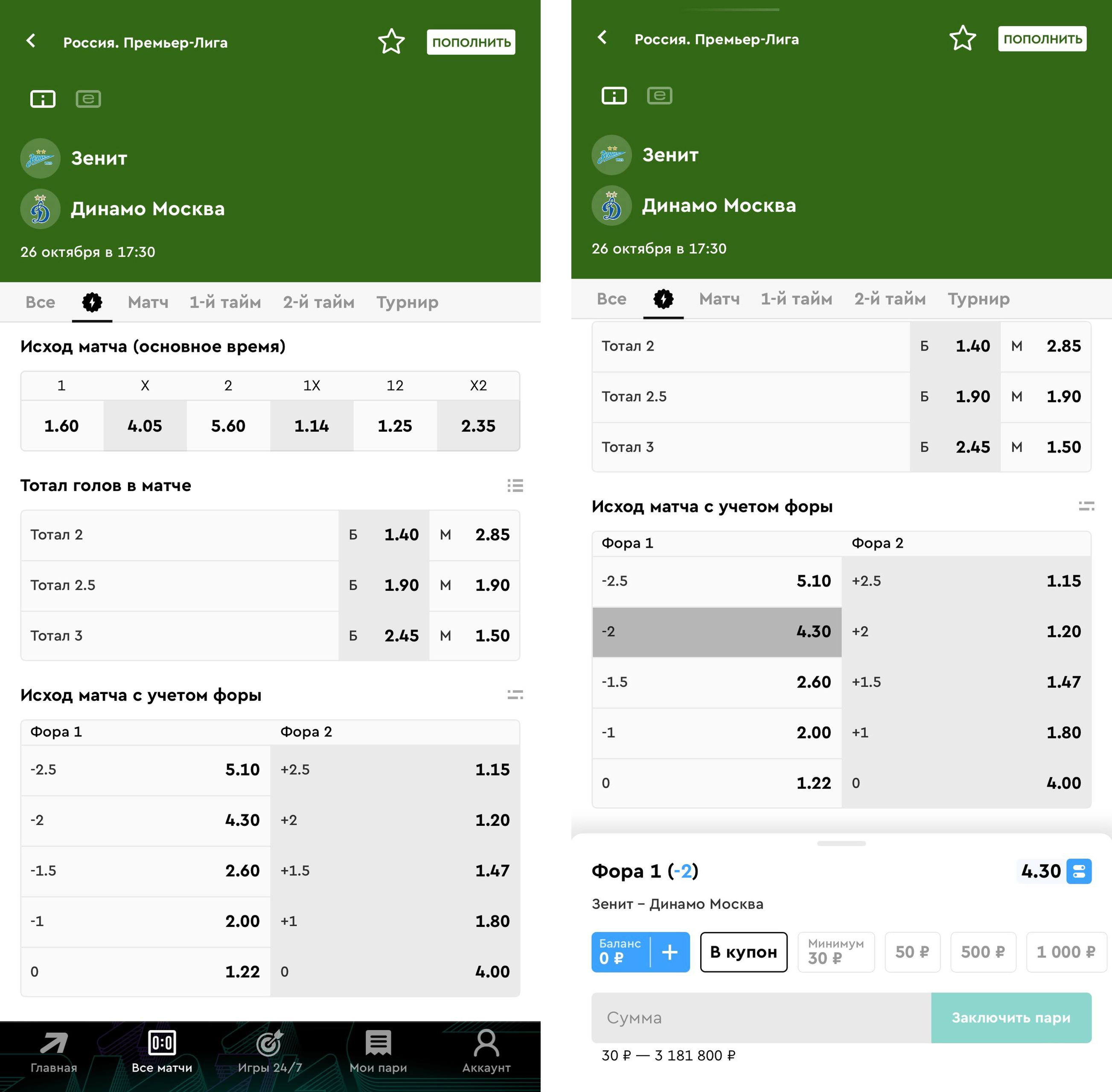 Пари сыграет, если петербуржцы победят с разницей в 3 или более мячей. Коэффициент на такой исход очень заманчив — 4.30. В обратном случае — будет поражение номинальных хозяев, ничья или победа над «Динамо», но с минимальным преимуществом. Возврат возможен при разнице в ровно 2 мяча.