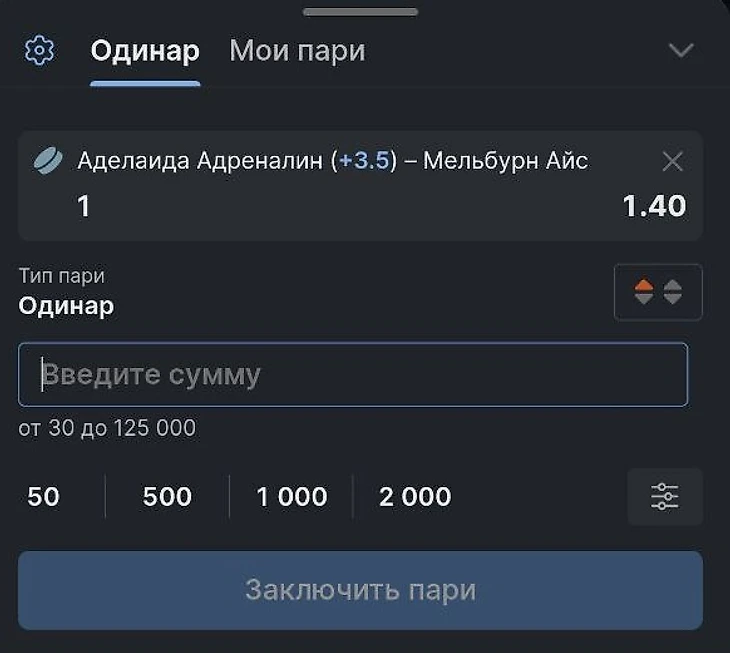 Пример №2. Беттор заключает пари Ф1 (+3,5) с кэфом 1.40 на матч чемпионата Австралии между «Аделаида Адреналин» и «Мельбурн Айс». Ставка принесет профит, если первая команда проиграет не более чем в 3 шайбы.