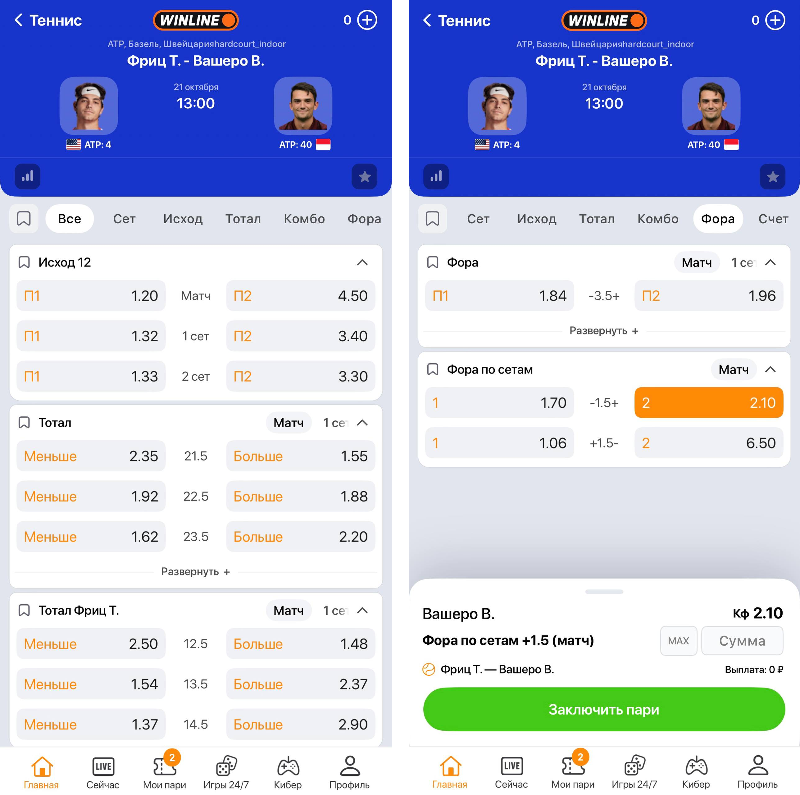 Рассмотрим на примере матча АТР в Базеле Тэйлор Фриц — Валентин Вашеро.