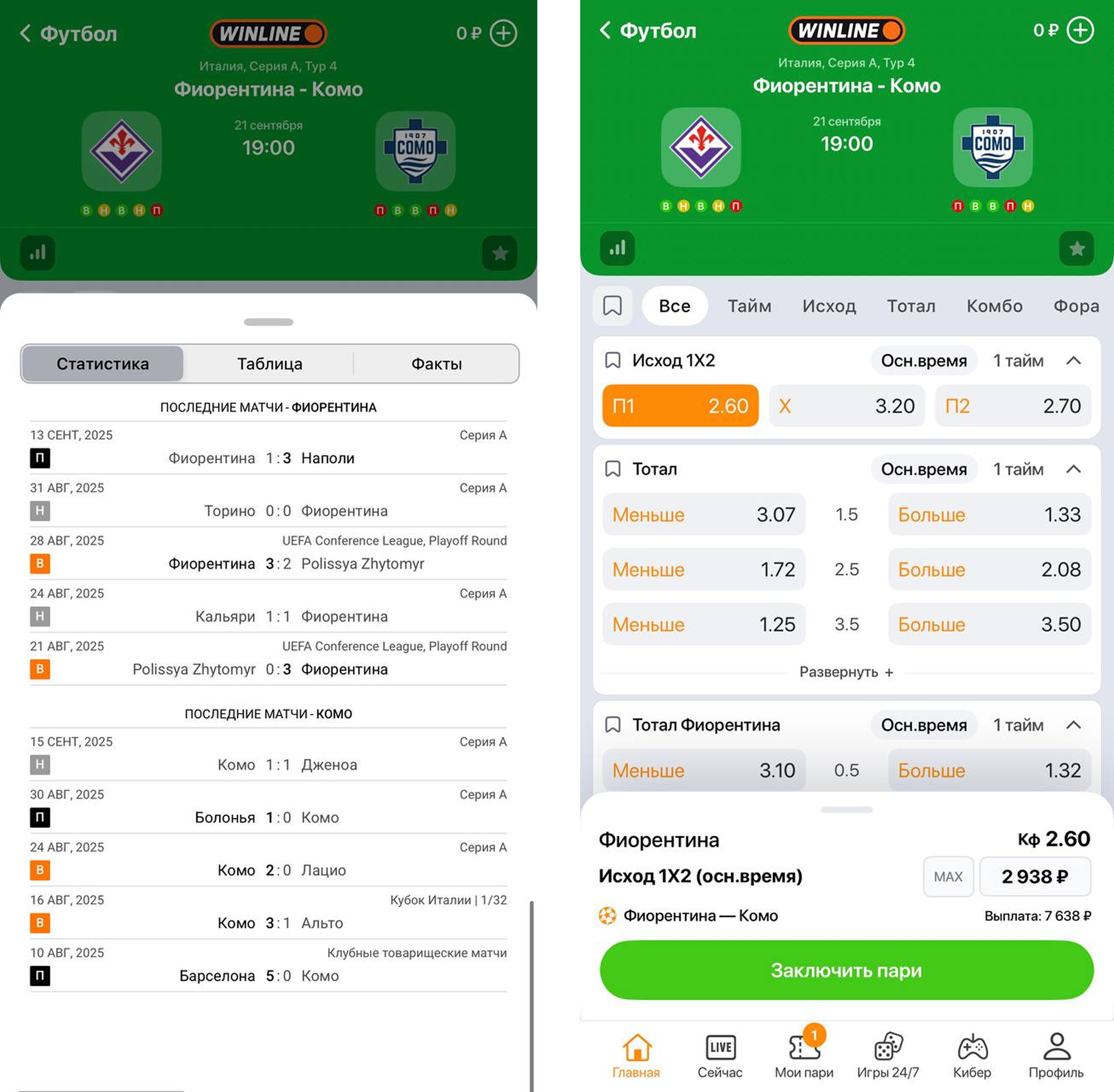 Теперь обратимся к практике на примере пары матчей одной и той же команды. В качестве базового клуба возьмем итальянскую «Фиорентину». На домашний матч с «Наполи» победа «фиалок» котировалась с коэффициентом 4.70. При ставке в 1000 рублей выигрыш составил бы 4700 рублей, но хозяева уступил.